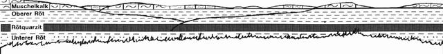 mit einer fast horizontal begrenzten Muschelkalkschichtfolge